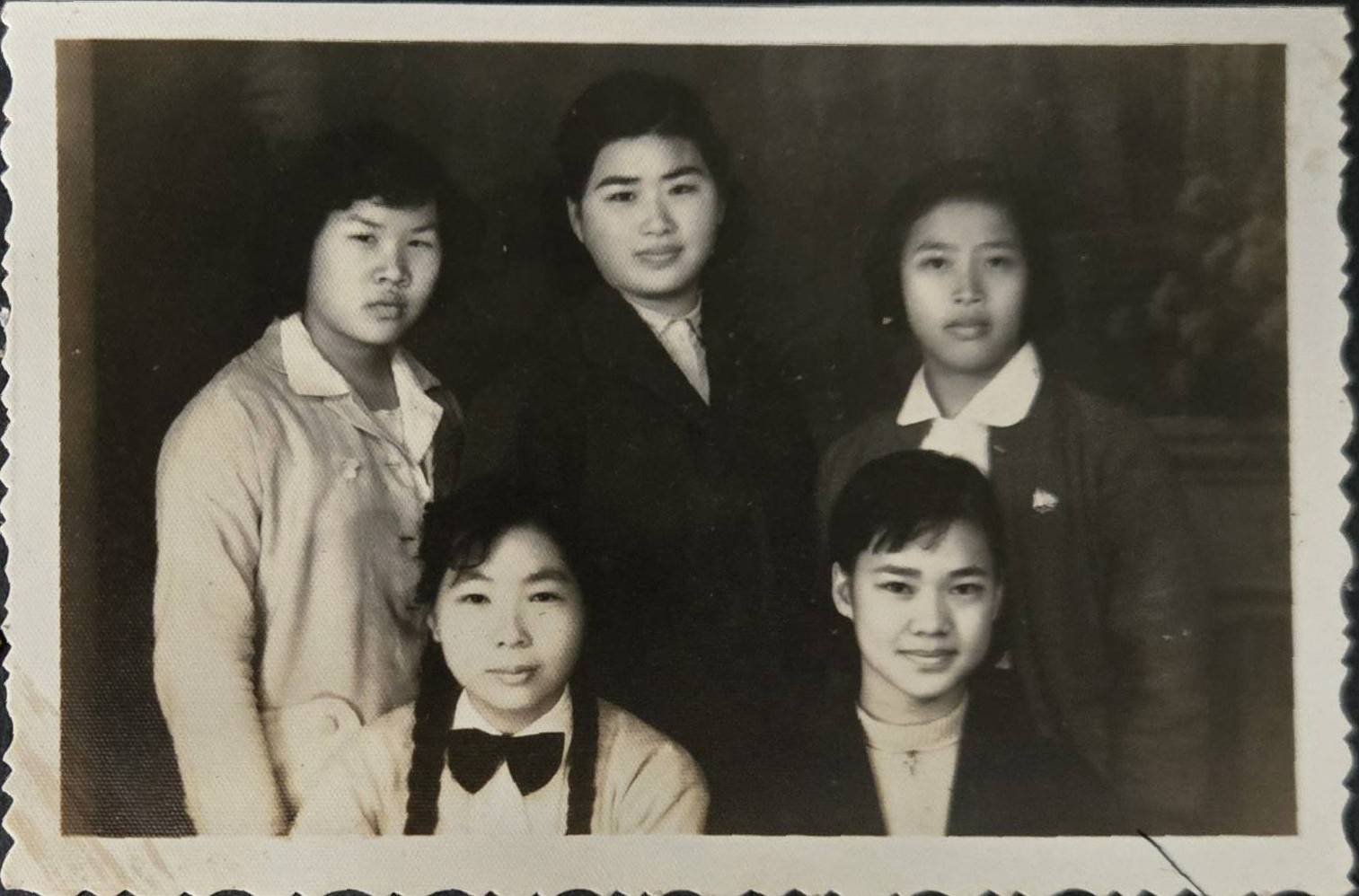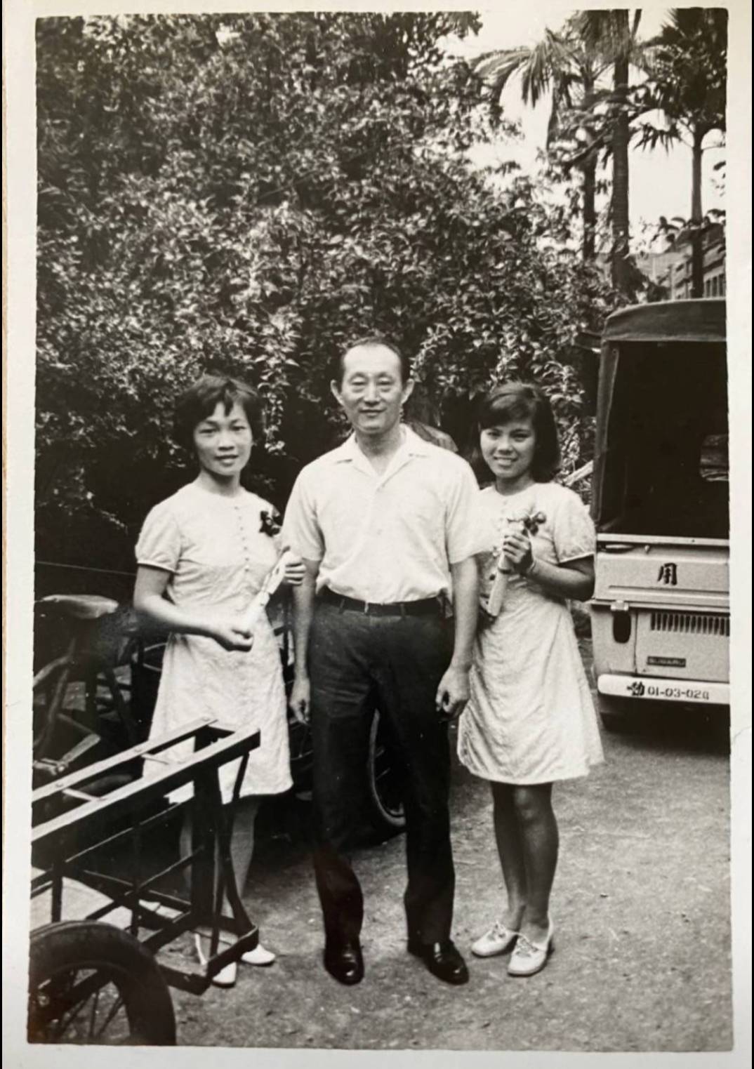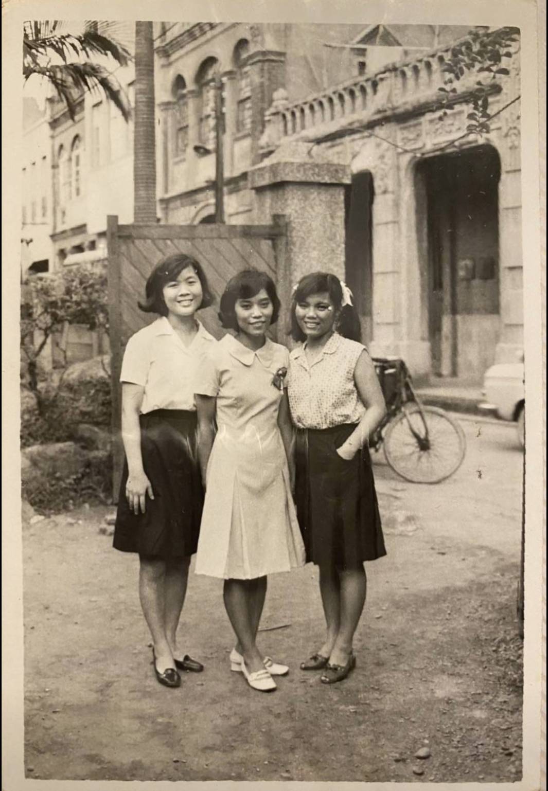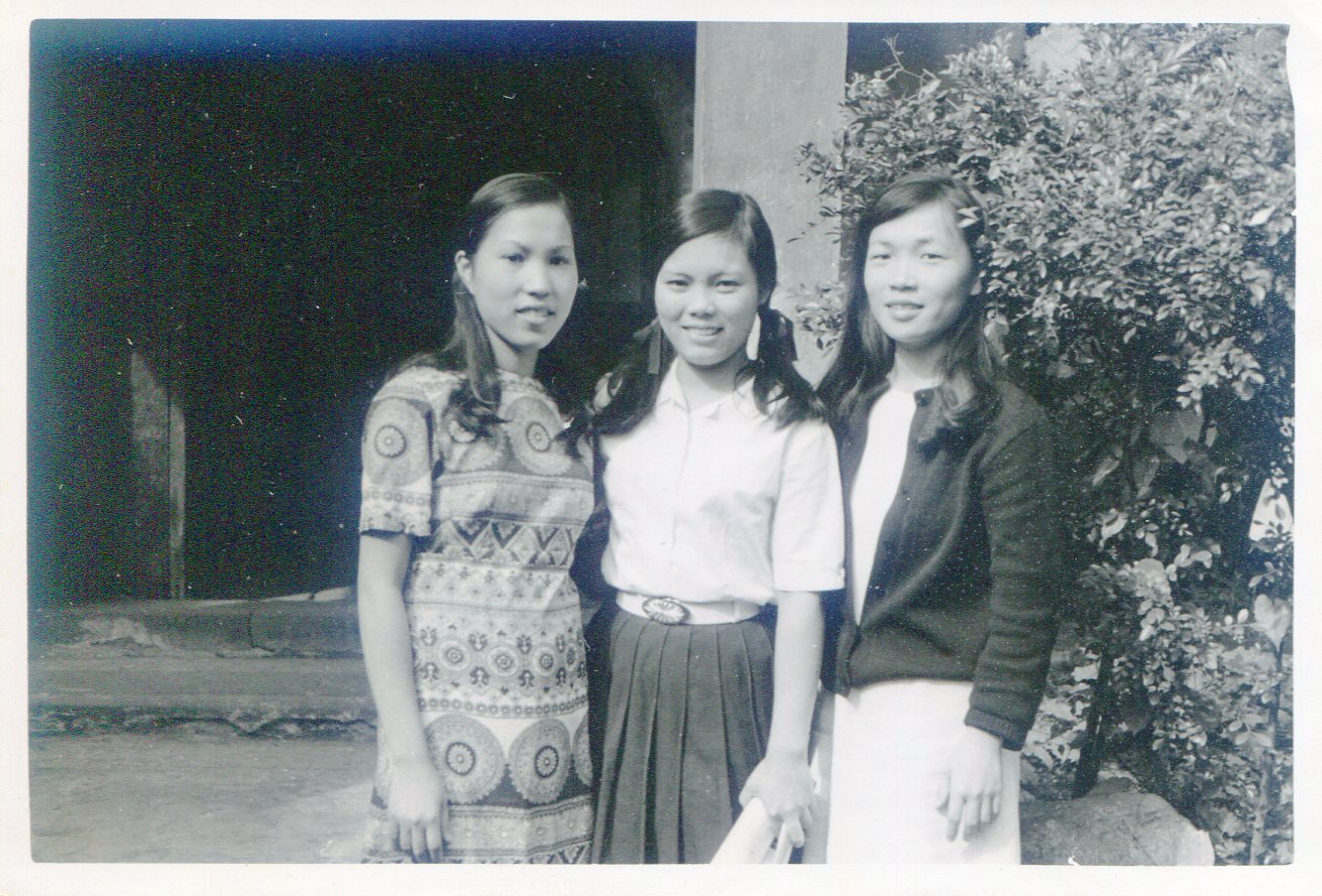 洪如碧提供(23)_1970.06_第十一屆畢業當天_書院內辦公室前院大門旁(李延旭宅院)_如碧和學姊林美理及同屆卓善俐合影