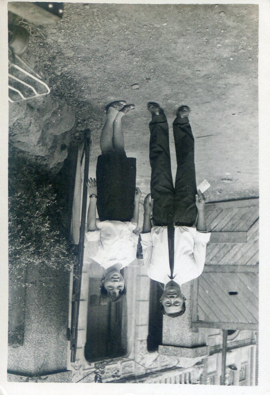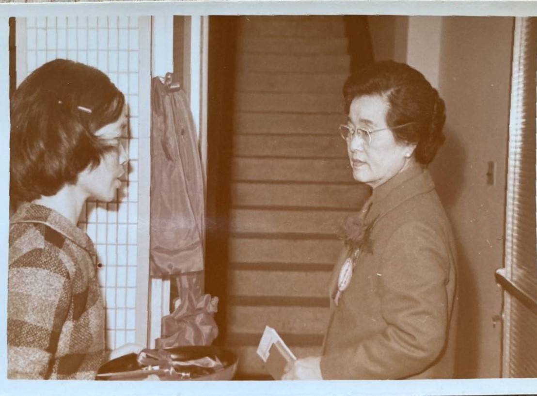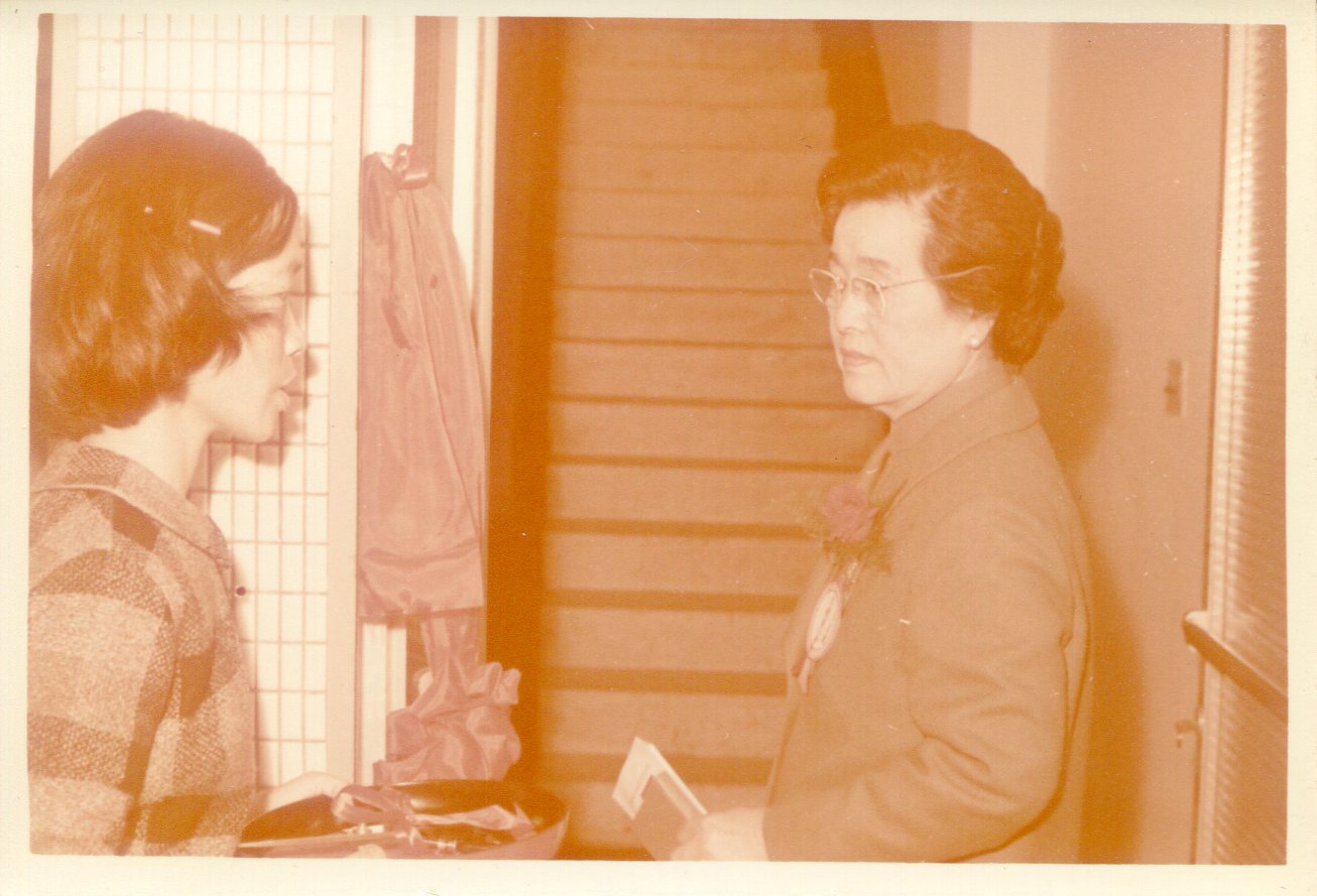 洪如碧提供(21)_1970.06_如碧和莊經顯牧師娘_台灣婦女聖經書院的大門口合照(李延旭宅院)