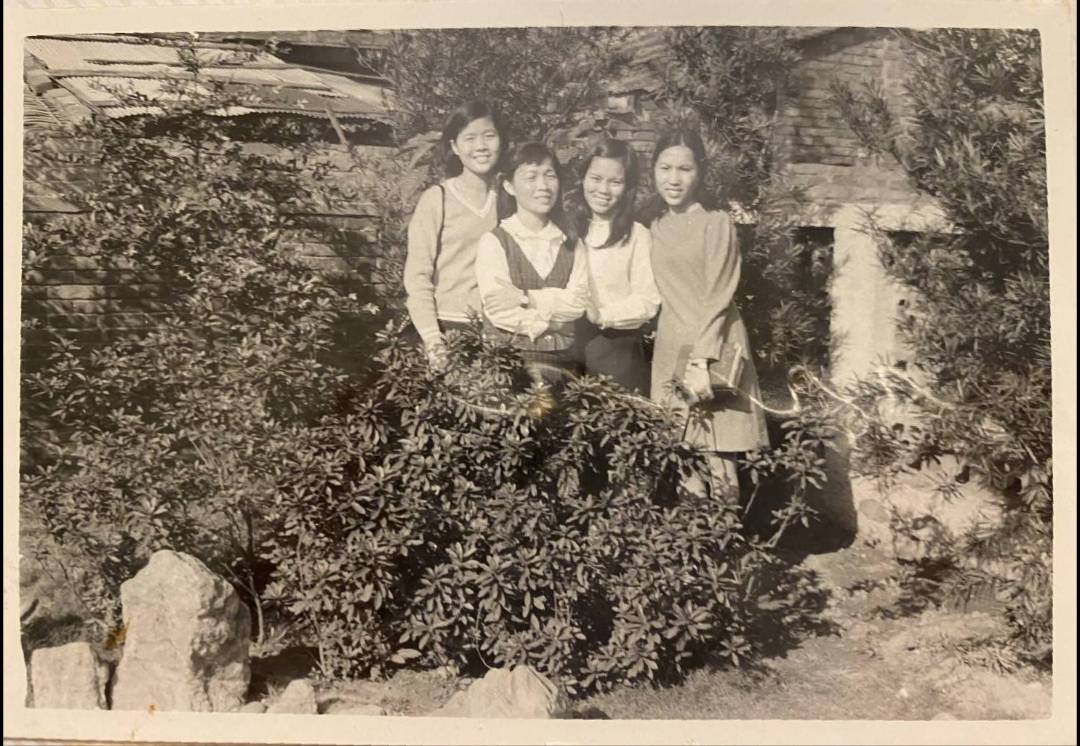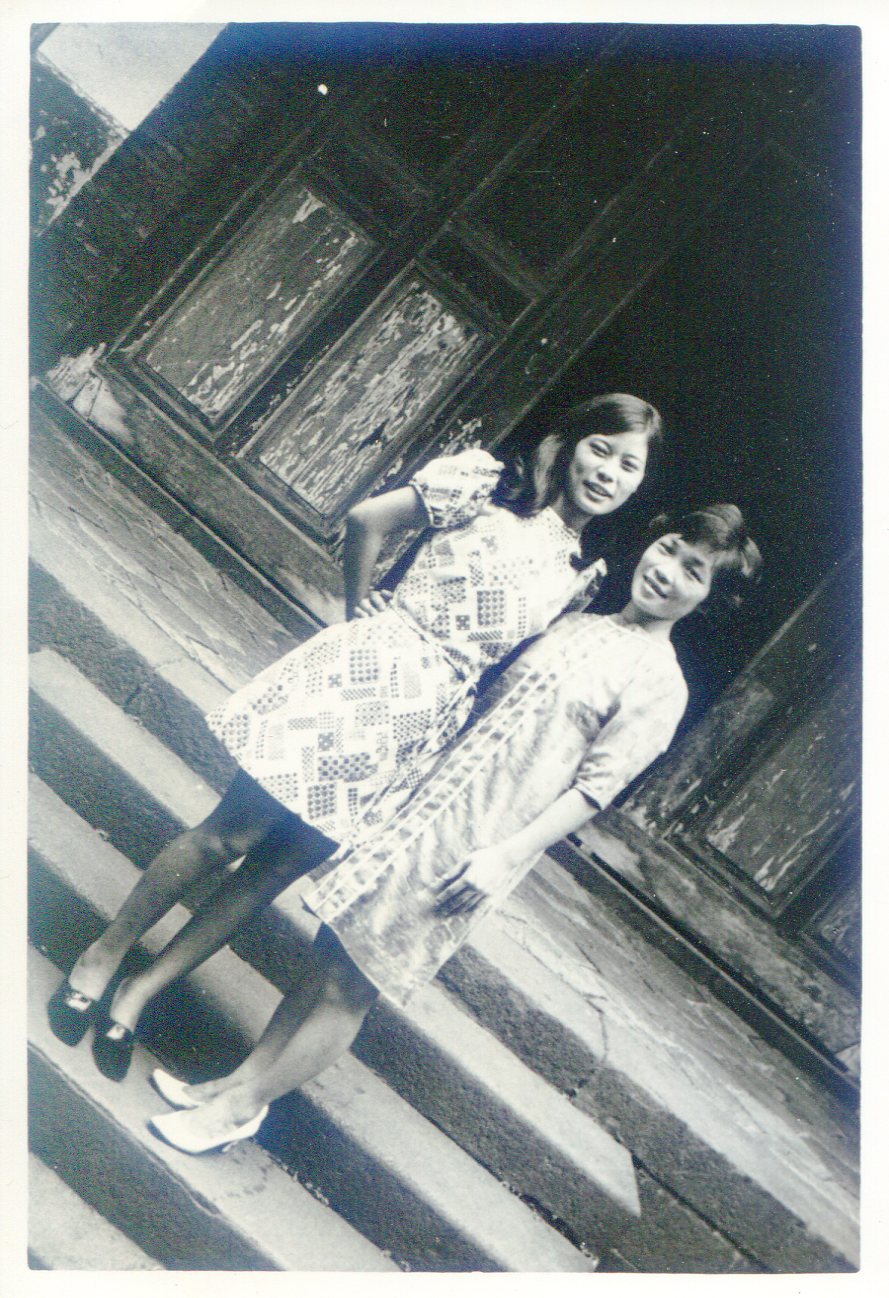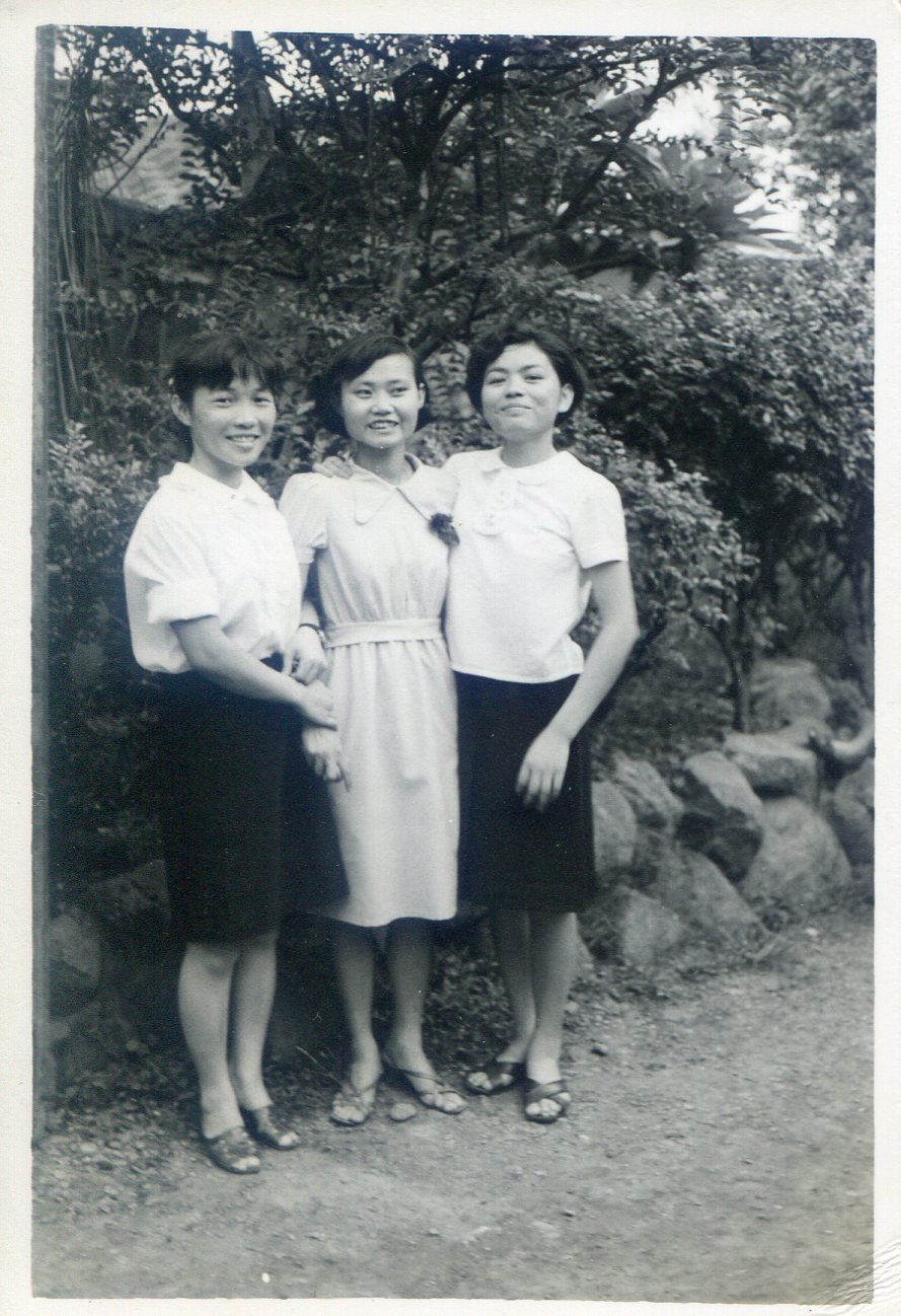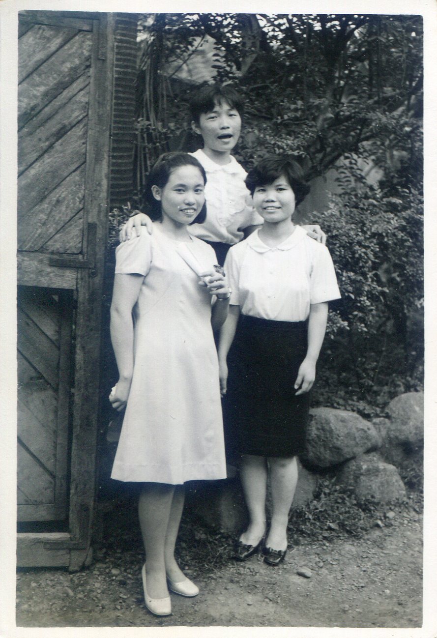 洪如碧提供(15)_1969-1971間_書院內辦公室前院大門旁(李延旭宅院)_左邊吳美月和學姊如碧、黃惠妹合影