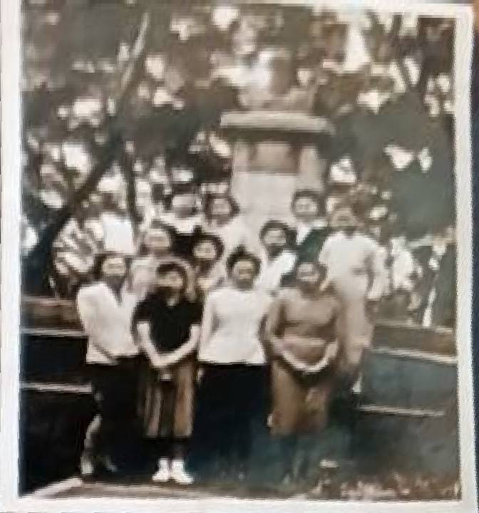 洪如碧提供(27)_1970_拆除舊屋_如碧和同屆同學_參加甘州街38號破土典禮獻詩後的合影