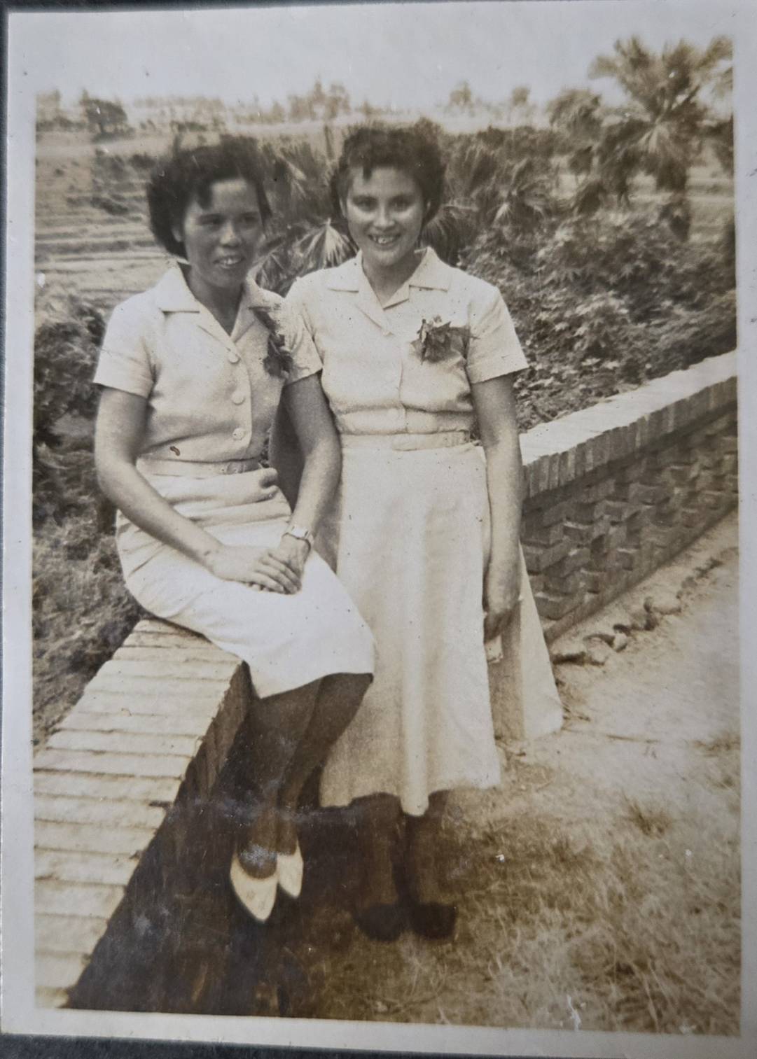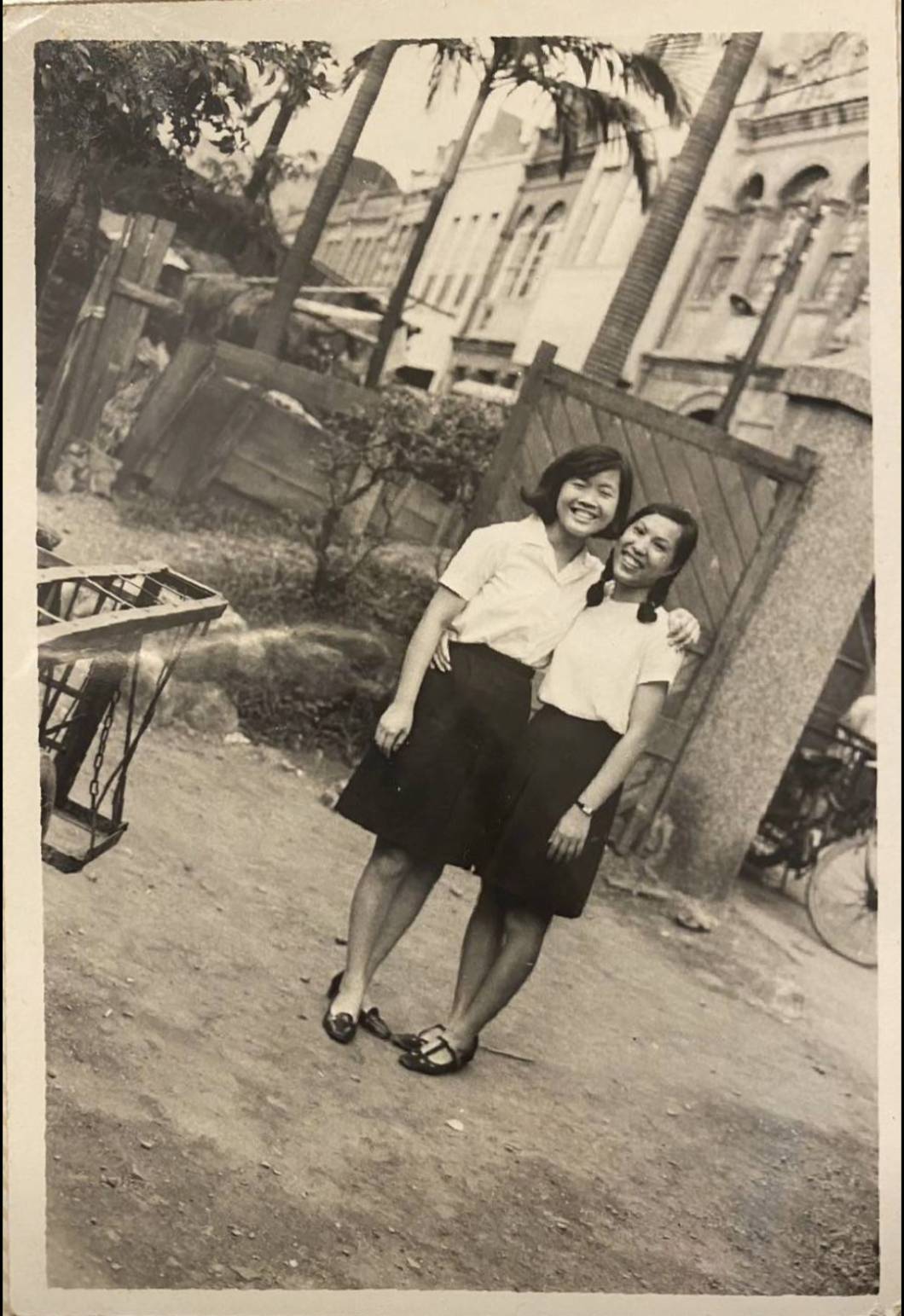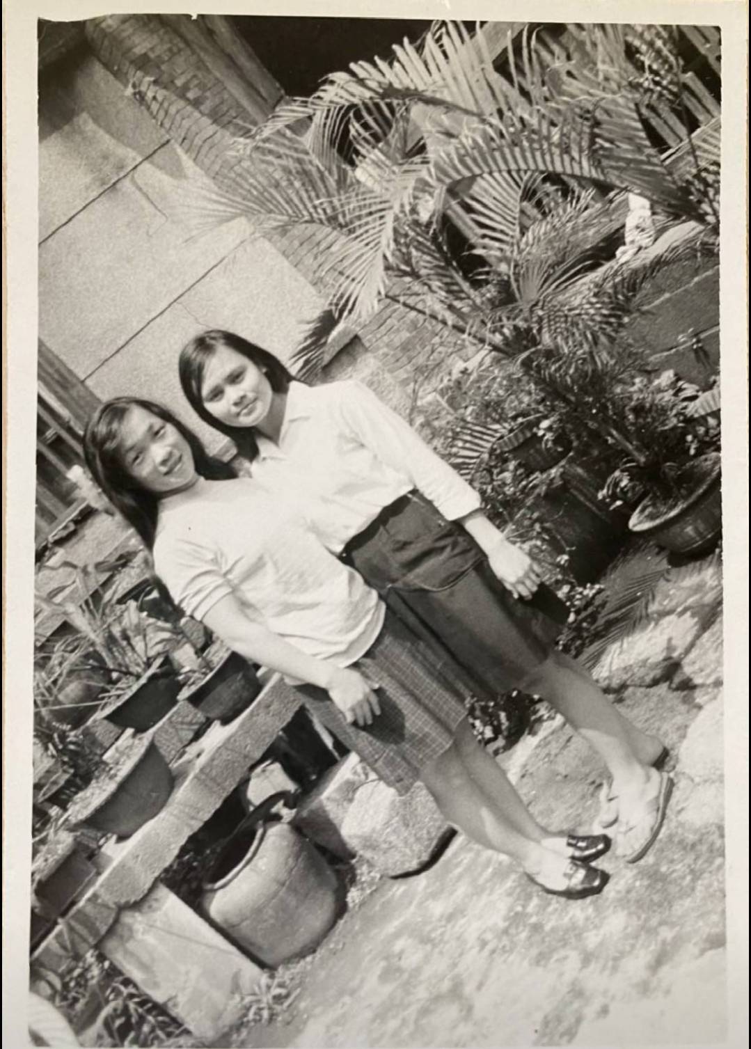 洪如碧提供(26)_1970_如碧和11屆學姊林慈珍合影_書院辦公室前(李延旭宅院)
