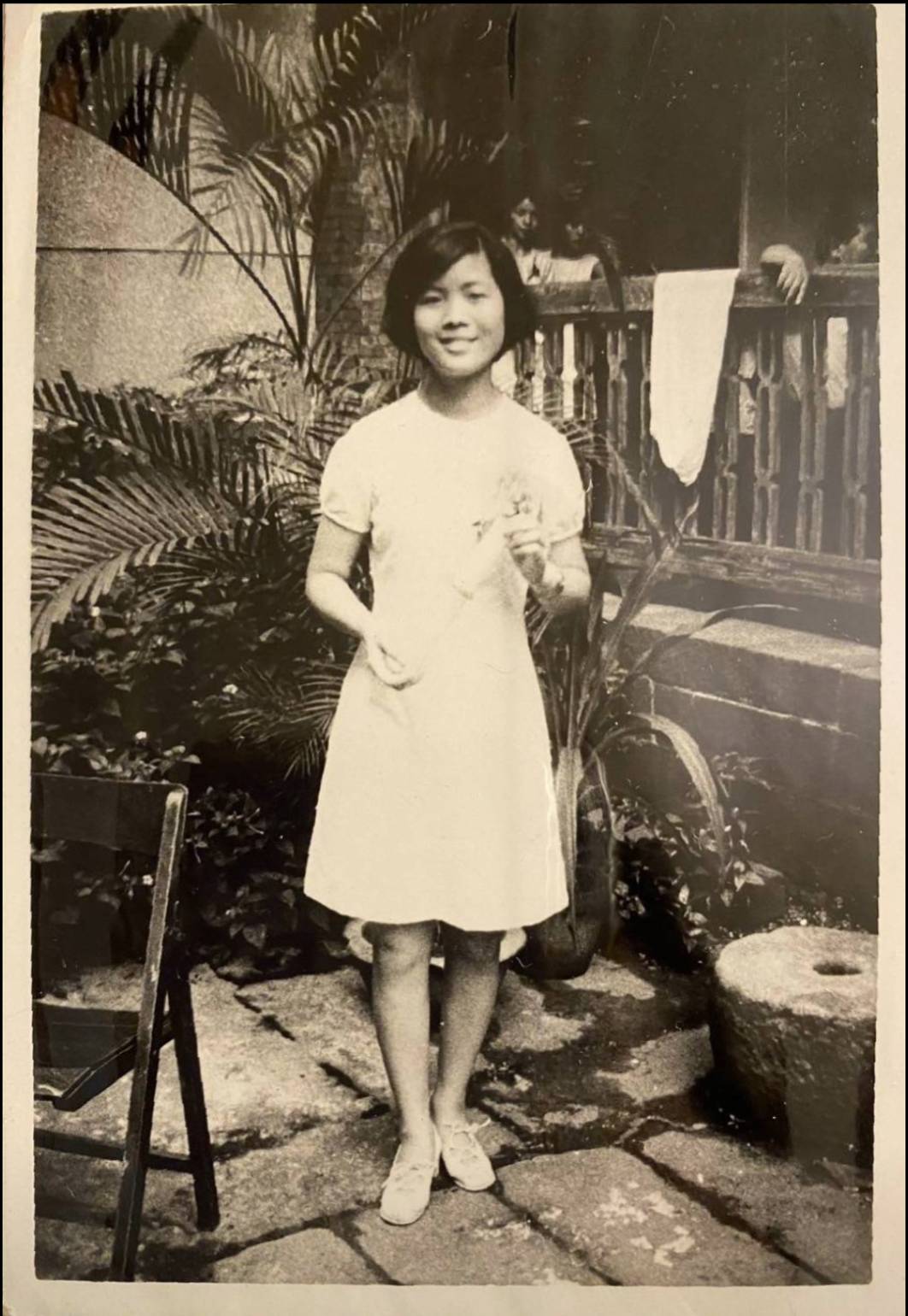 洪如碧提供(31)_1971.04.06__書院內辦公室前院(李延旭宅院)_學妹吳美月獨秀